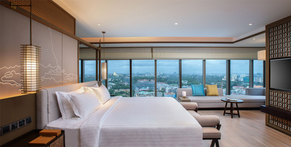 The hotel features 336 elegantly appointed rooms and suites, each designed with contemporary aesthetics and equipped with modern amenities to ensure a comfortable stay. Guests can enjoy panoramic views of Yangon’s skyline, with some rooms offering direct views of the magnificent Shwedagon Pagoda, especially stunning at sunrise and sunset. Every room includes plush bedding, a spacious bathroom, a smart TV, complimentary high-speed Wi-Fi, and premium in-room services to enhance the guest experience.